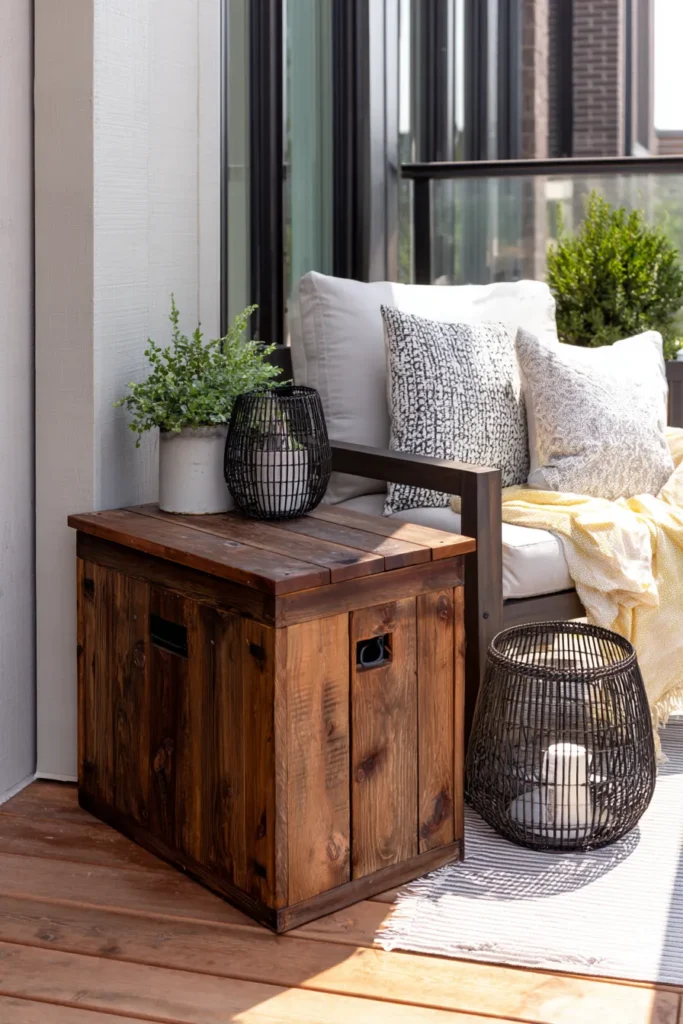 I think this is such a smart idea for tight outdoor spaces. It keeps things organized without sacrificing style. I love how it feels tidy and modern while still leaving room to relax.