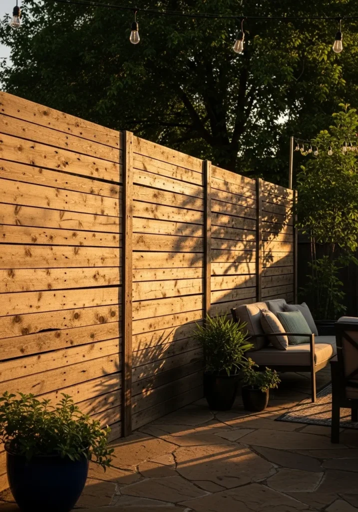Horizontal Wood Fence for Warm Patio Privacy