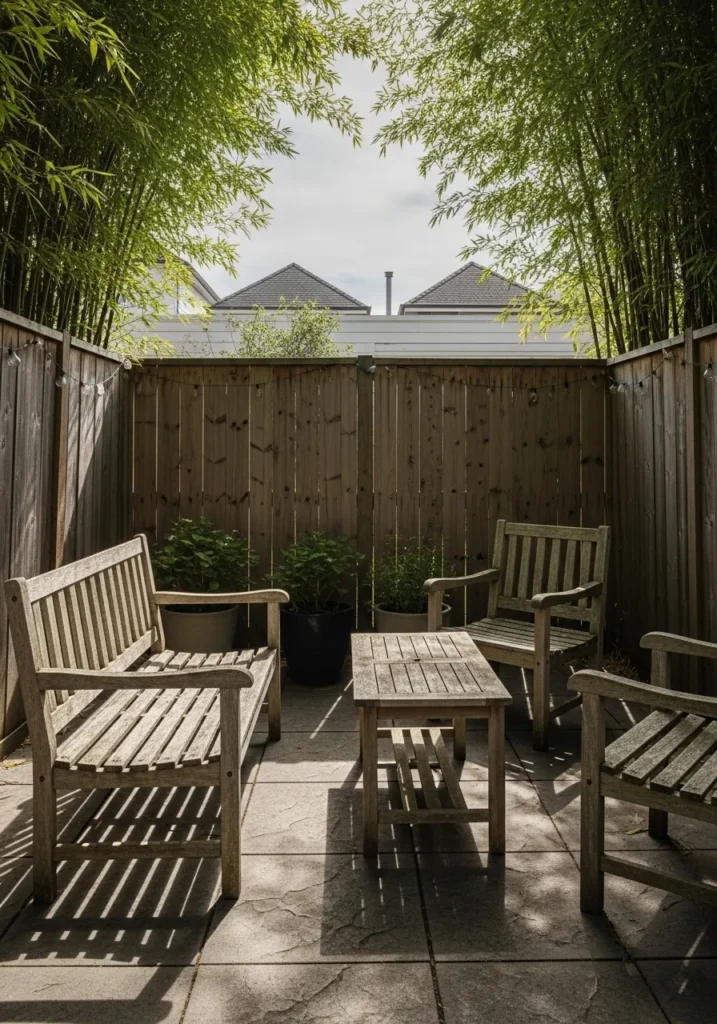 Bamboo Fence Creating a Secluded Patio Nook