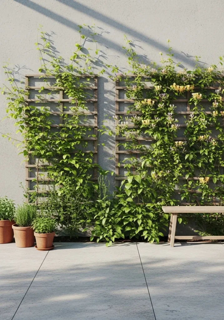 Climbing Plants on a Trellis for Living Privacy
