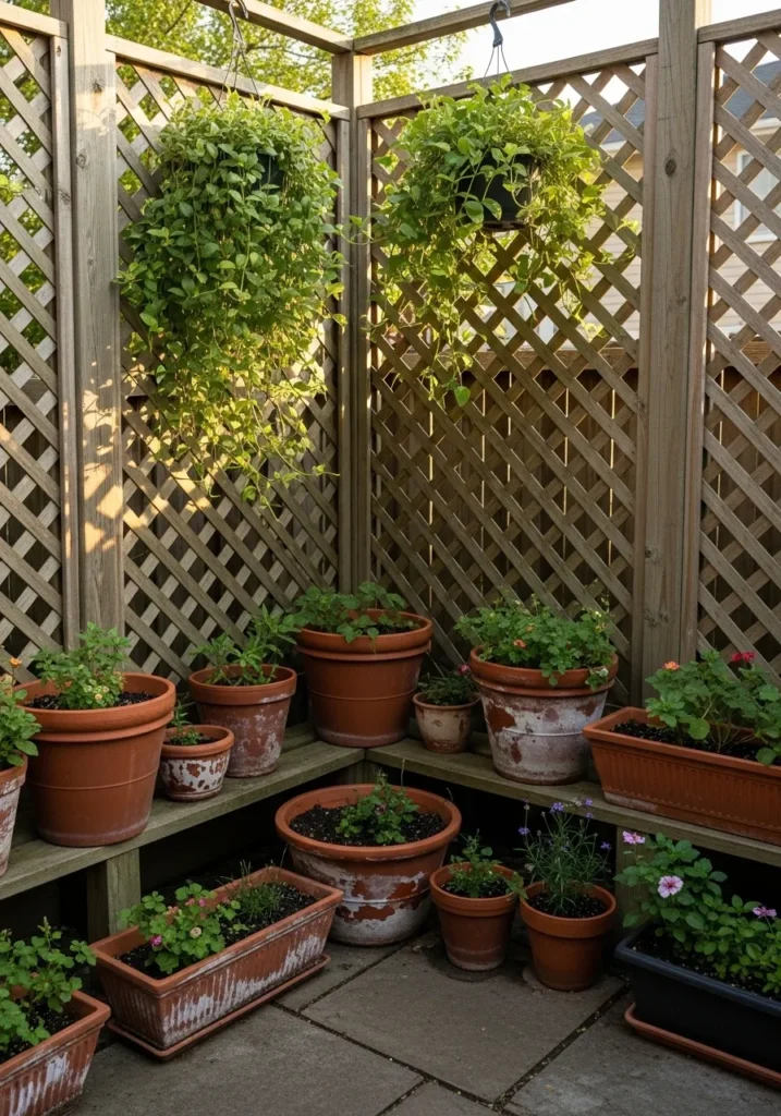 Lattice Panels with Potted Plants for Layered Privacy