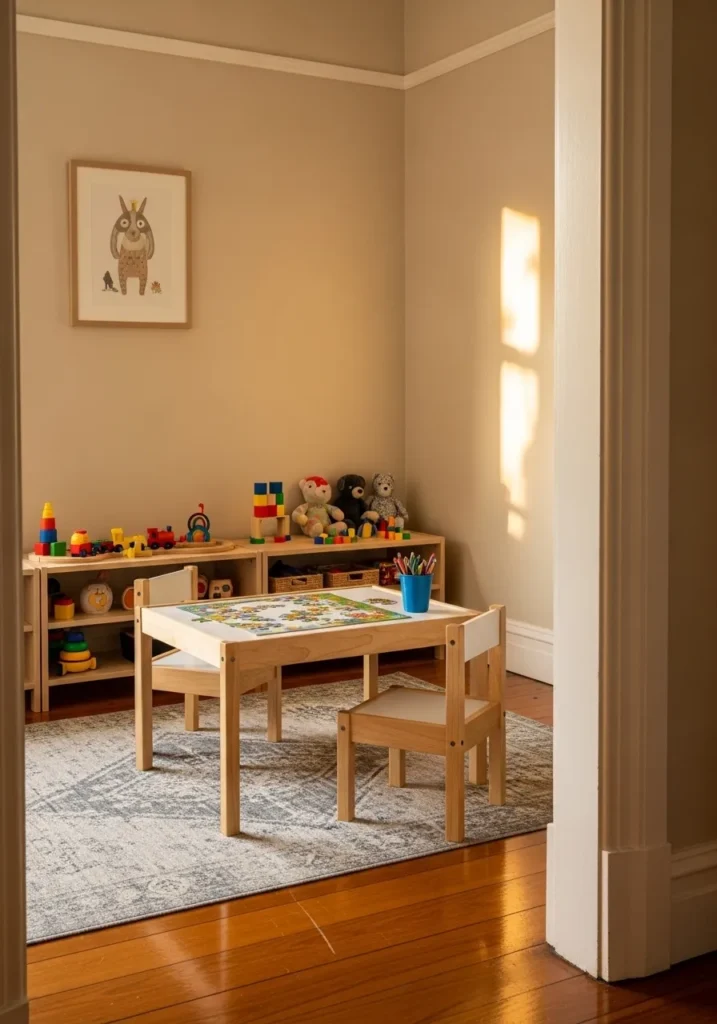 It is such a joy to see a space that feels both organized and totally fun for little ones. No matter your style for the rest of the home, I think a neutral base like this in a playroom is a genius move because it lets the vibrant toys become the main attraction. The way the warm sunlight hits that wooden floor just makes the whole room feel like the perfect spot for a creative afternoon.
