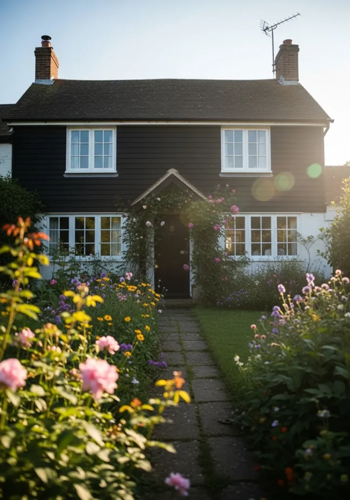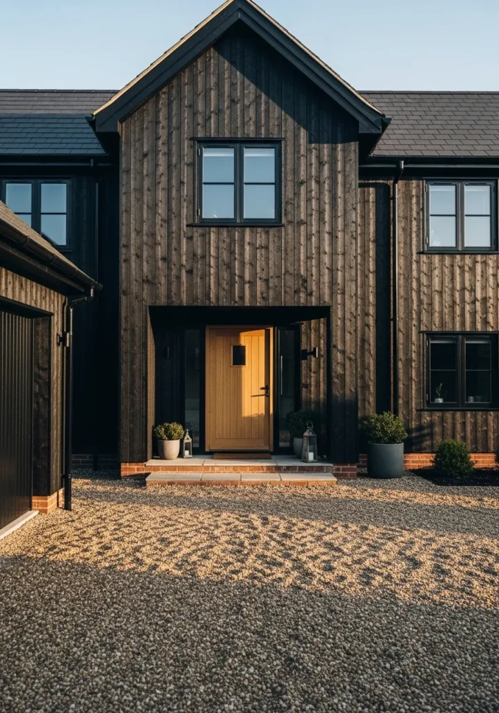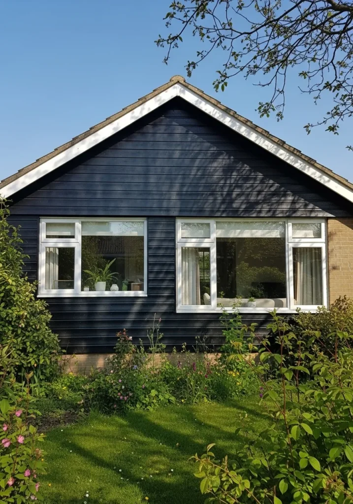 The undertone leans slightly warm, which helps it settle in with natural surroundings like a garden or older brick. In brighter light it can ease into a charcoal look, which makes it easier to live with on a full exterior. It is a good pick if you want a dark house that still feels a bit familiar and not too sharp.