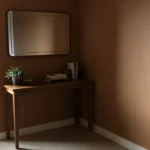 The undertone leans just slightly cool, though it stays fairly neutral overall. On a painted wall like this, especially one with a bit of wear, it can soften into a dark charcoal in certain light. That actually works in its favor. It keeps the finish from looking too perfect and makes it easier to live with on older surfaces.