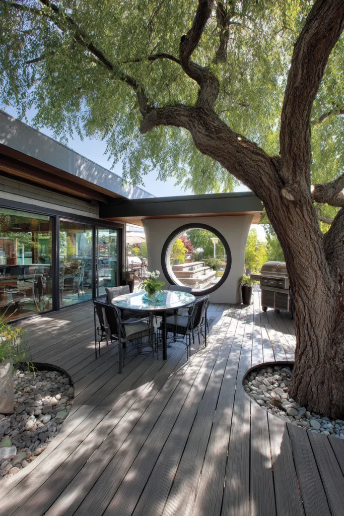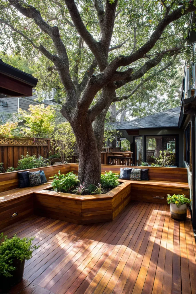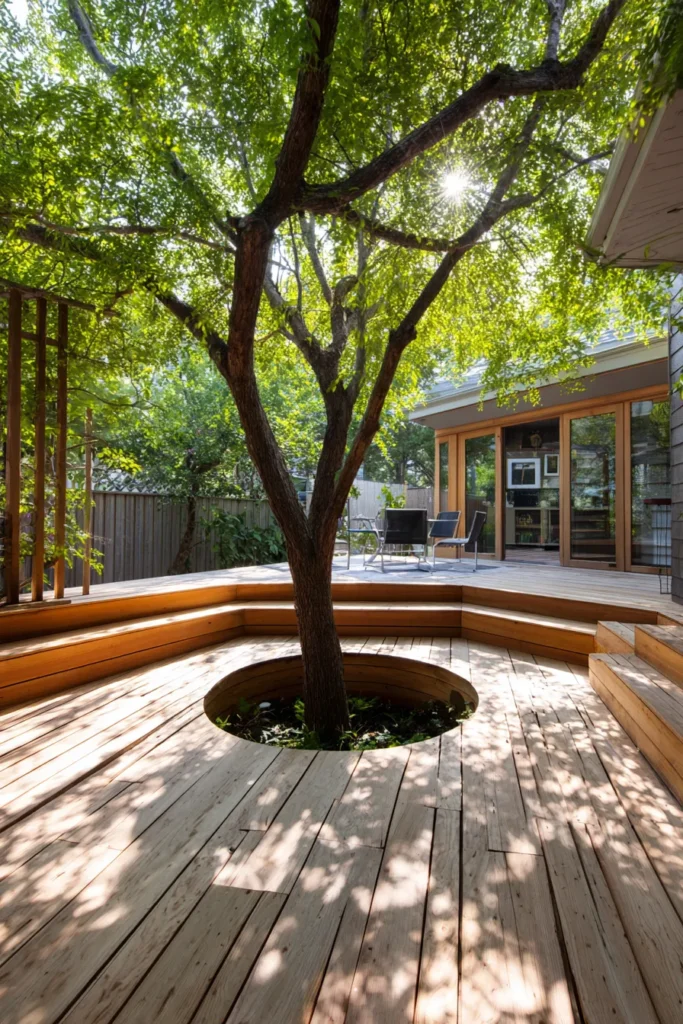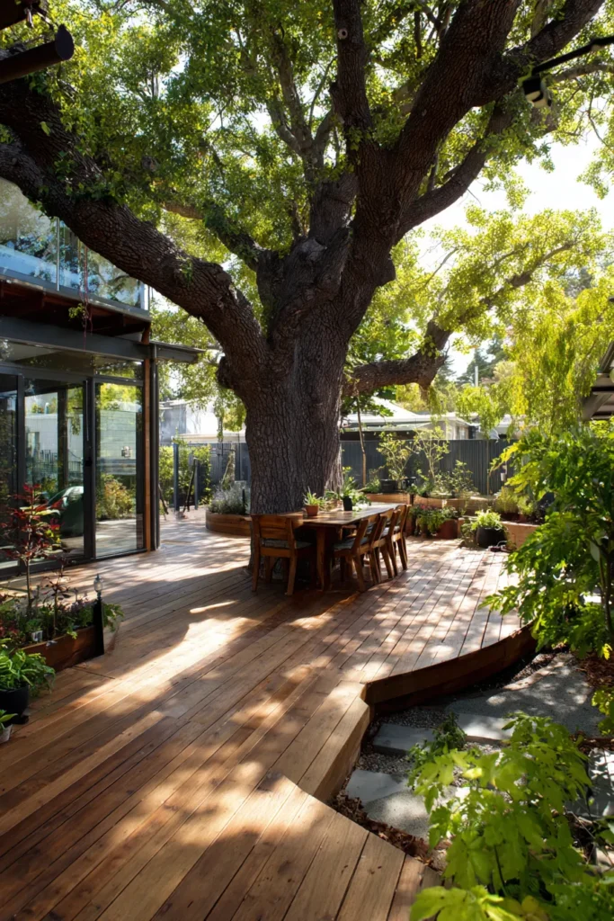 I am always impressed by designs like this because they feel respectful. Instead of cutting the tree out, the deck celebrates it. That makes the whole space feel more soulful and alive, which is exactly what I look for in outdoor design.