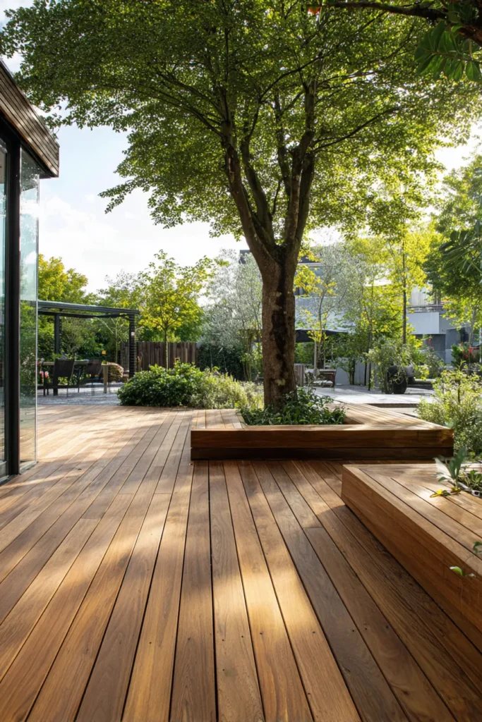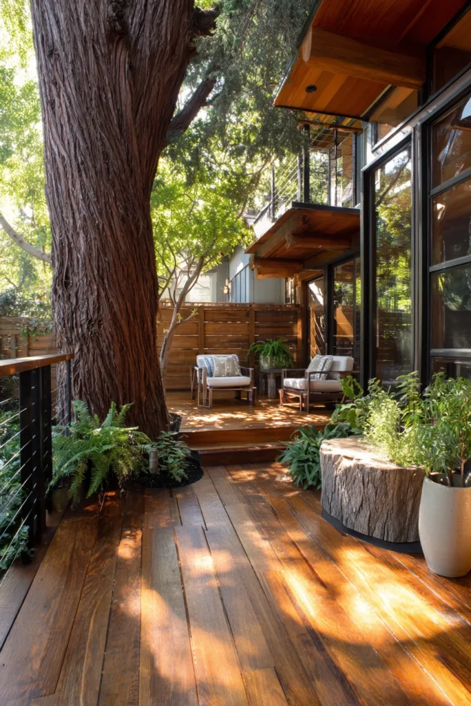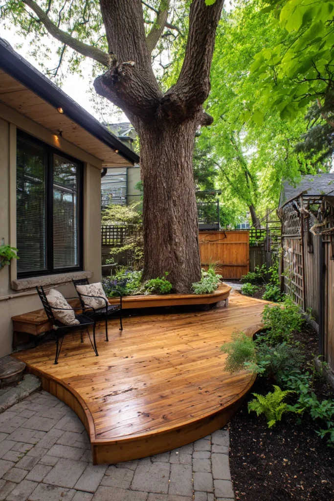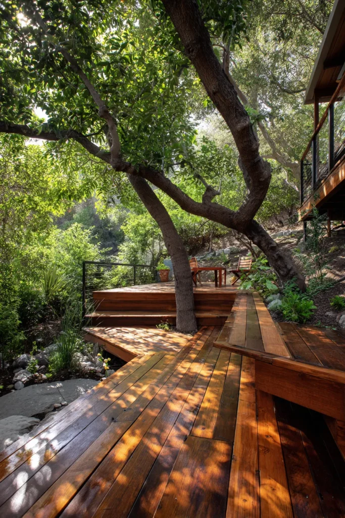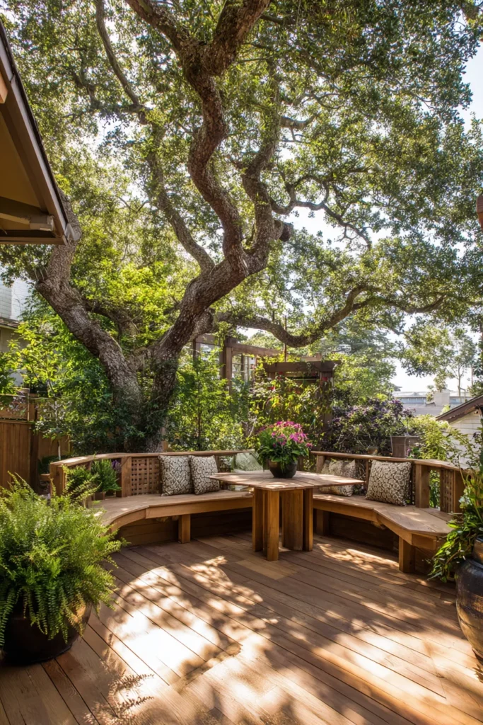 I am always impressed by designs like this because they feel respectful. Instead of cutting the tree out, the deck celebrates it. That makes the whole space feel more soulful and alive, which is exactly what I look for in outdoor design.