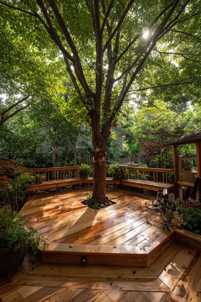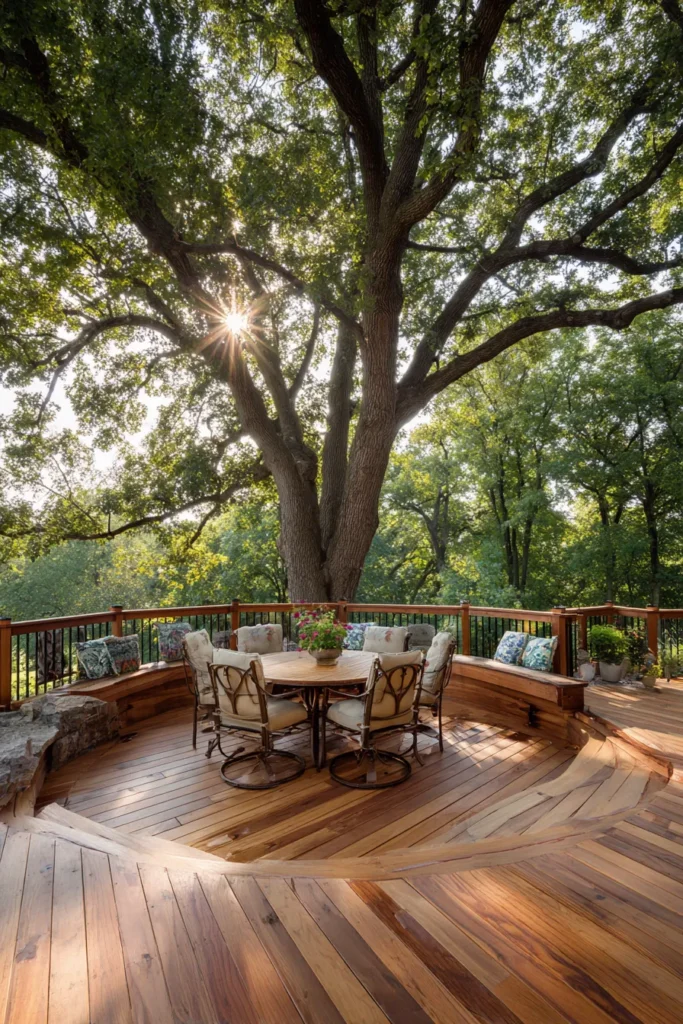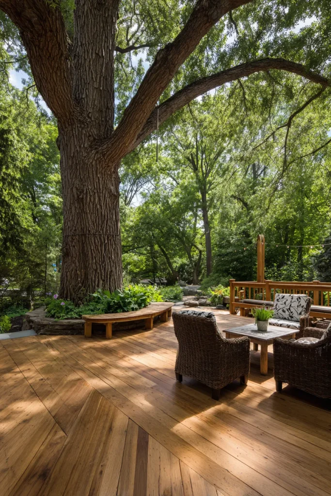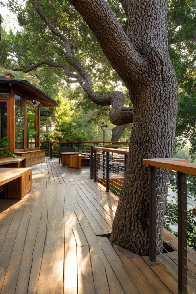 23 Stunning Deck Ideas Built Around Trees for Natural Beauty