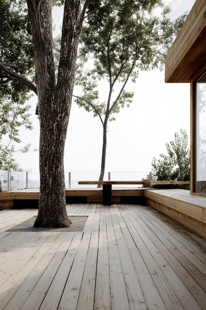 I really appreciate how calm this design feels. It proves that you do not need a lot of extras to make a statement. The tree alone adds all the drama, and I love how the deck quietly steps back and lets nature do the talking.