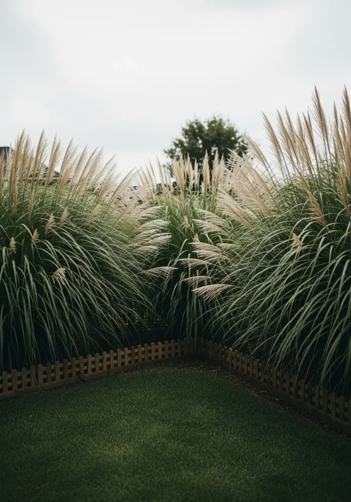 This backyard relies on tall ornamental grasses to form a soft, natural privacy wall. The greenery wraps around the lawn and adds movement and texture while still keeping the space feeling open. It feels organic and calming rather than structured or rigid.
