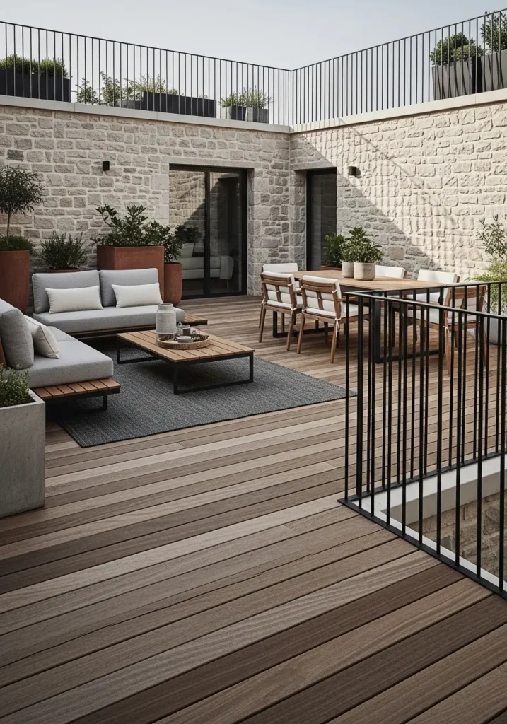 I am always drawn to terraces with beautiful wood tones. They instantly feel warm and welcoming. This design strikes such a lovely balance between casual comfort and polished style, which is exactly what I look for in outdoor living.