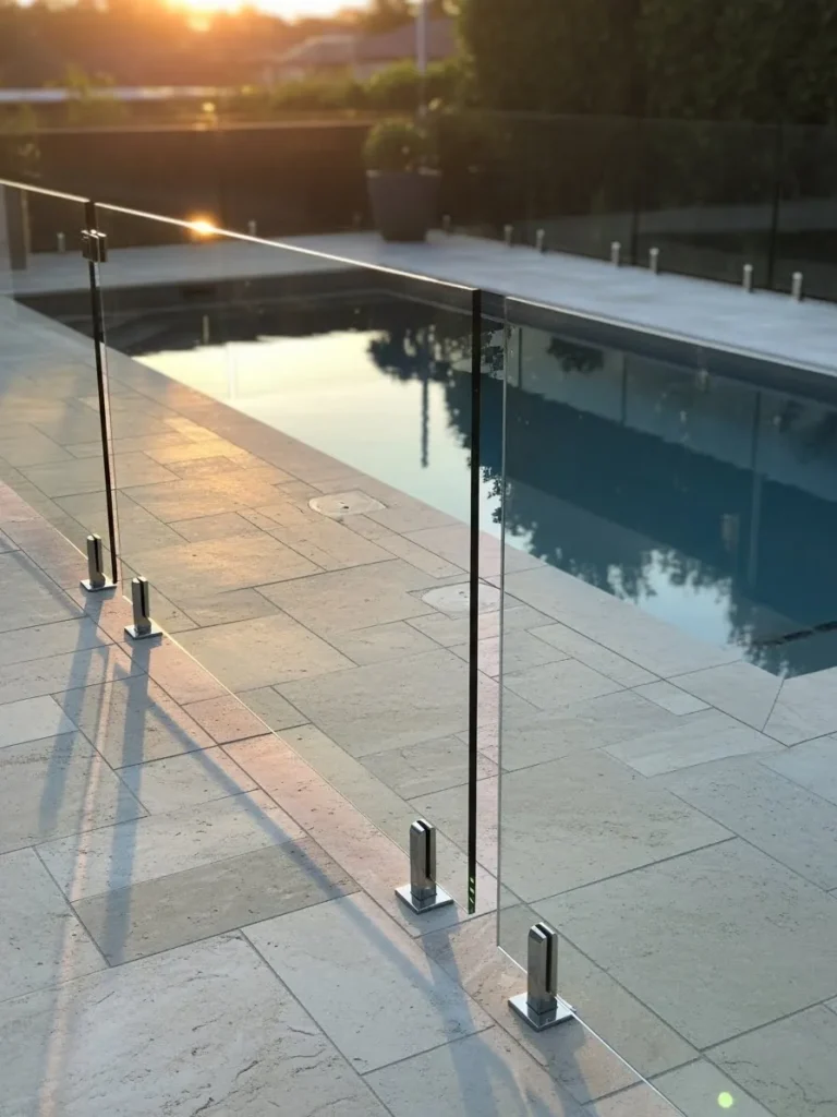 Glass Pool Fence Catching Warm Evening Light