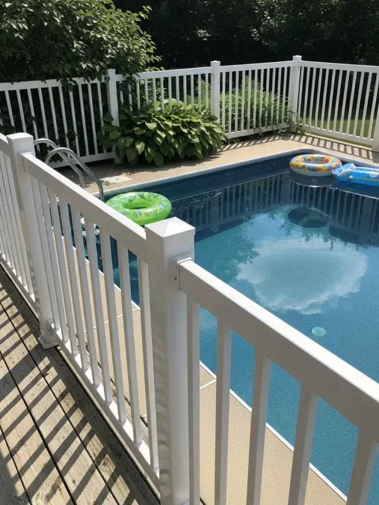 I really like how this fence feels timeless and no fuss. It reminds me of designs that never go out of style and still look good years later. The clean lines make the pool area feel tidy and safe without stealing attention from the water itself, which is always a win in my book.