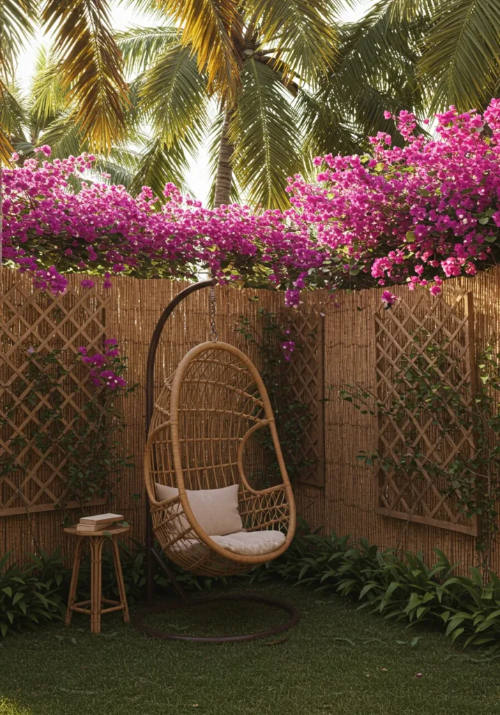 Serene Corner Nook with Bougainvillea and a Hanging Chair