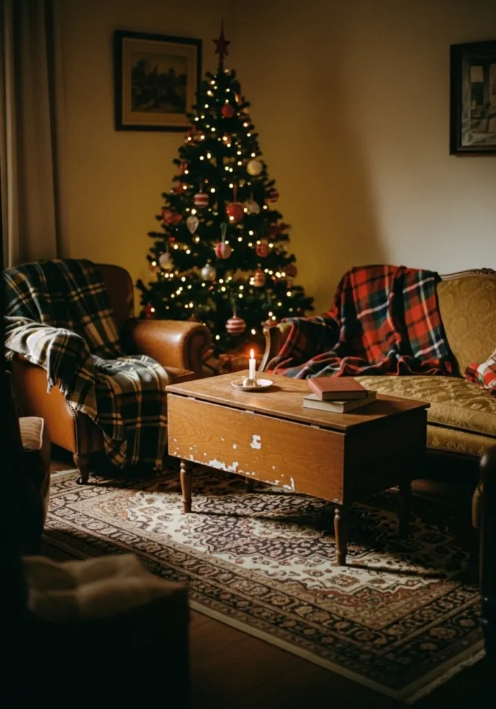 I find this look so refreshing. It reminds me that beauty doesn’t need to be grand—it can be found in the sweet imperfections of handmade decorations and the scent of pine filling a tiny living room.