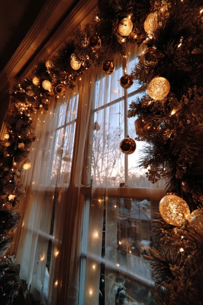 I think this look is absolutely stunning because it manages to be both sophisticated and cozy. The way the lights reflect off the ornaments makes the whole window sparkle without feeling too flashy. It’s one of those setups that makes you stop mid-scroll and think, “Okay, that’s the holiday glow I want this year.”