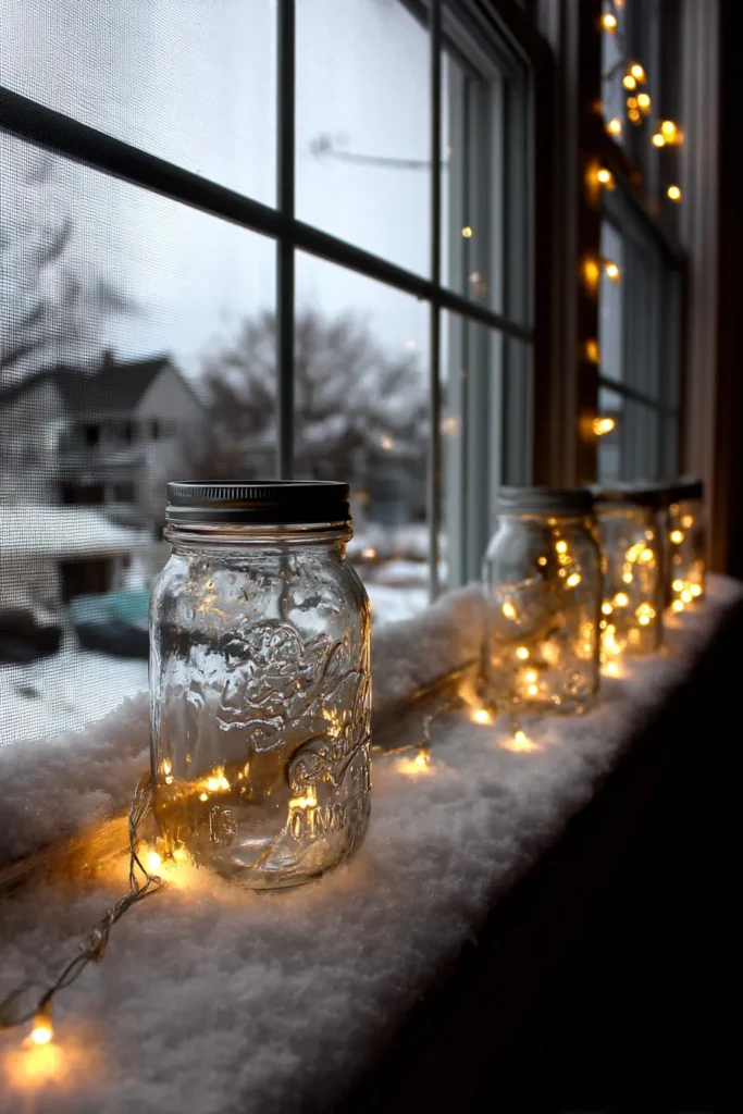 I absolutely adore how creative yet effortless this idea is. It has that perfect DIY charm that makes a space feel personal and cozy without going overboard. The mason jars give it such a farmhouse feel, and the twinkle of the lights feels like a little reminder to slow down and enjoy the beauty of winter nights.