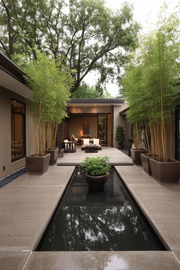 Symmetrical Water Feature and Bamboo Lane